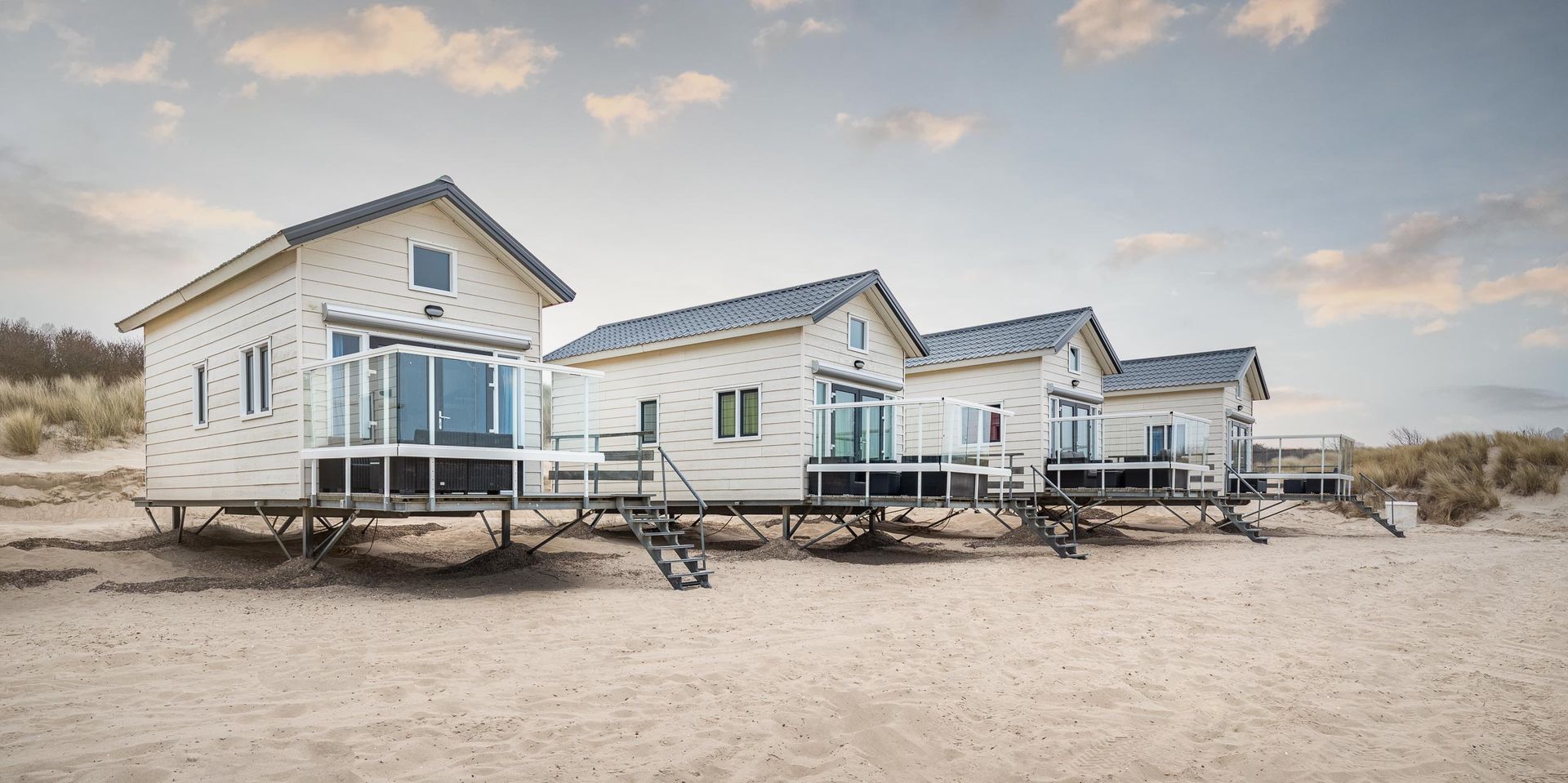 De moderne stranddbungalows zijn volledig ingericht en bieden alles voor een ontspannen verblijf dicht bij zee.